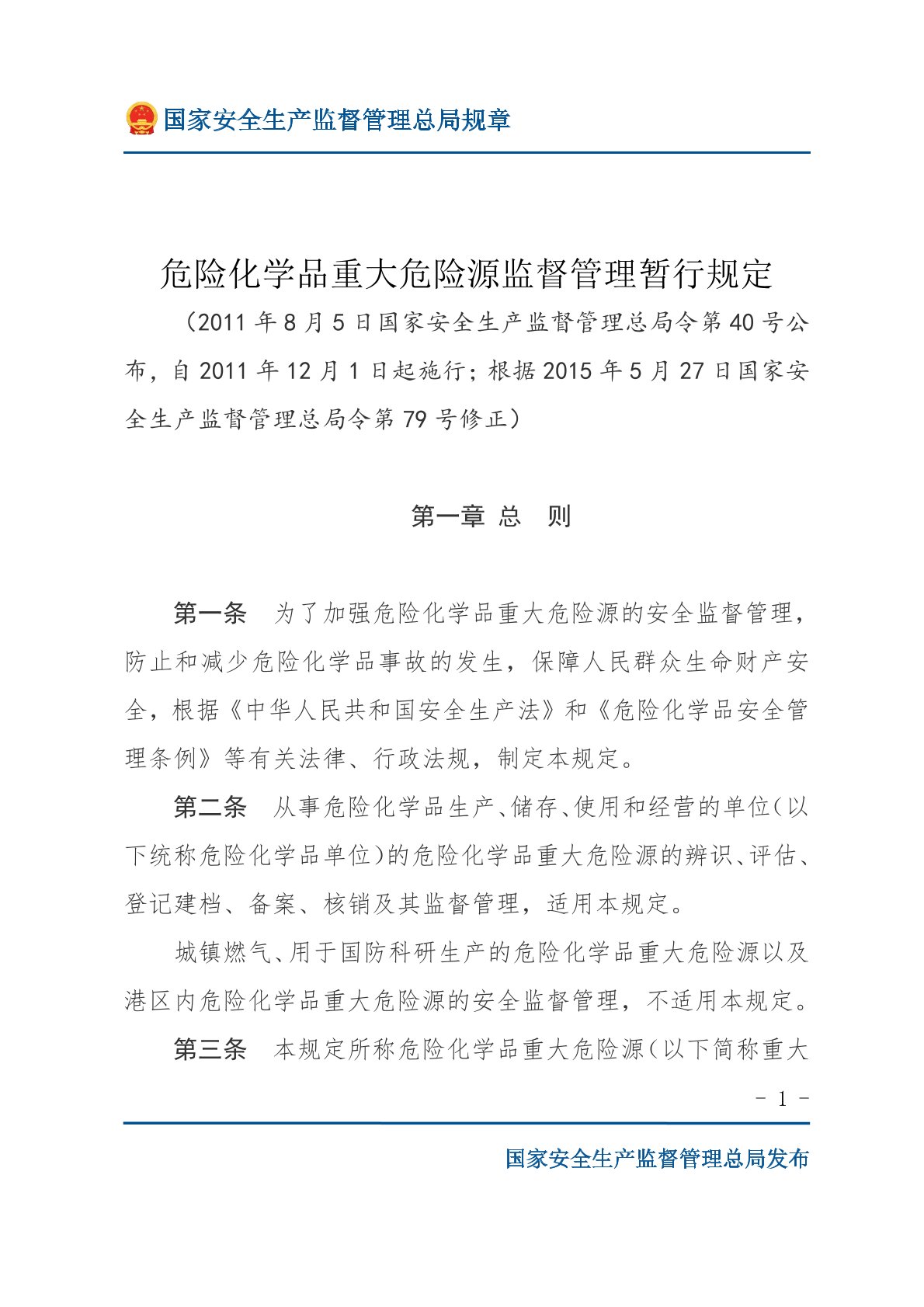 危險化學(xué)品重大危險源監(jiān)督管理暫行規(guī)定