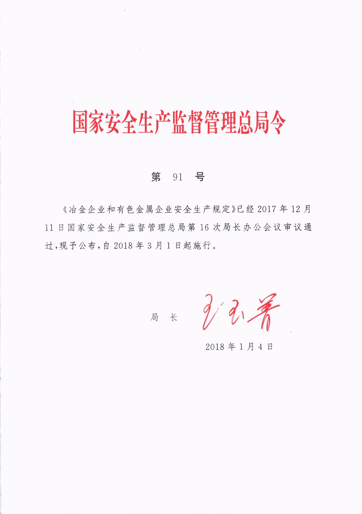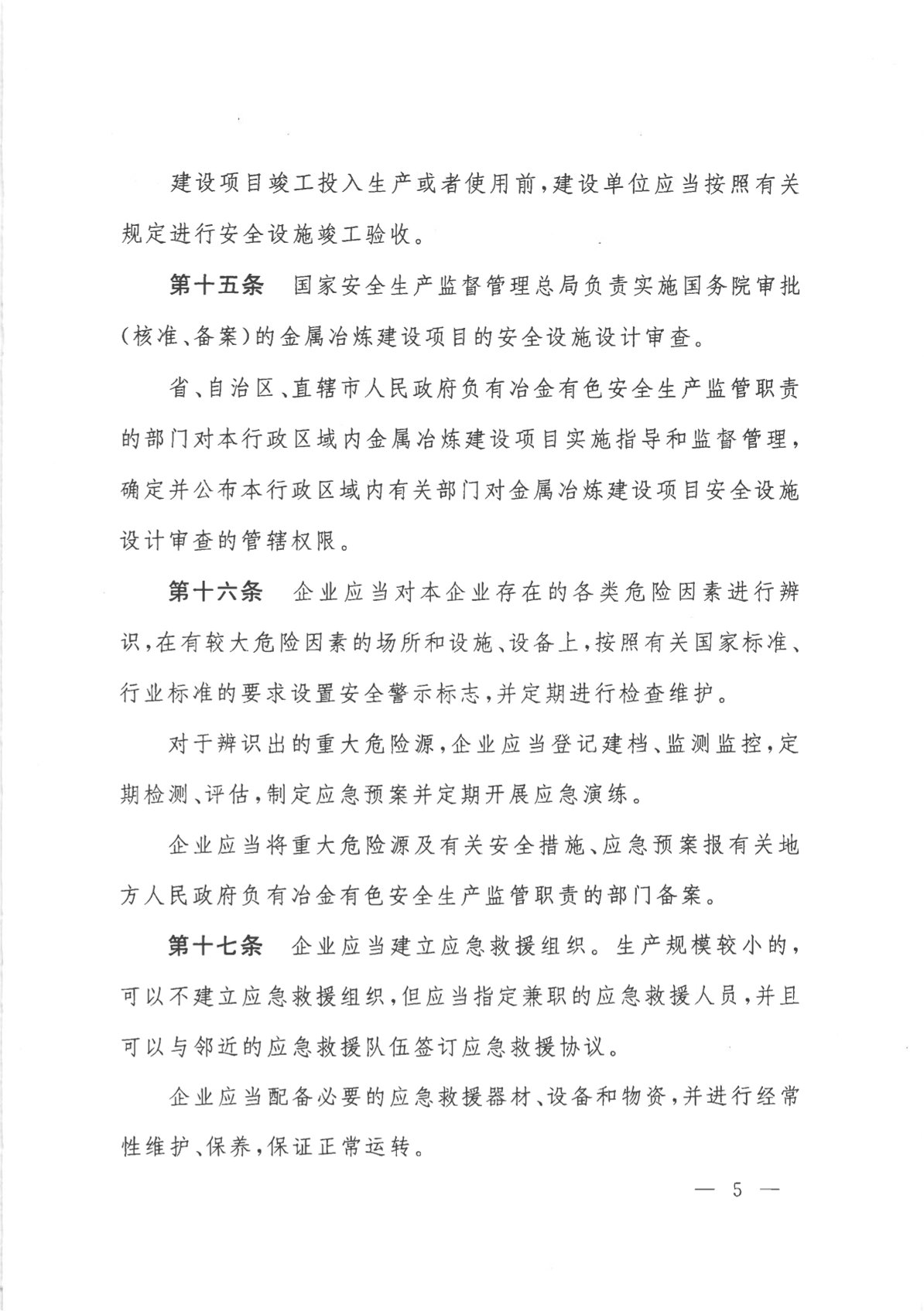 冶金企業(yè)和有色金屬企業(yè)安全生產(chǎn)規(guī)定